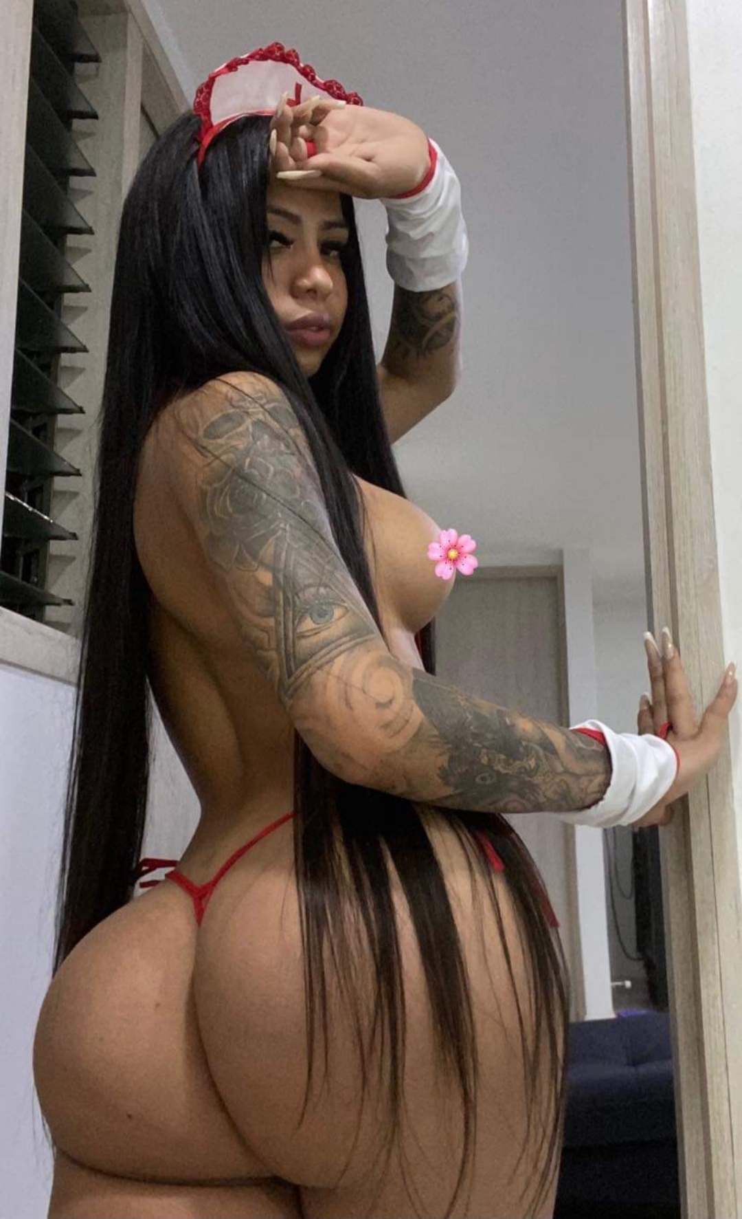 Físicamente es espectacular. Tremendo cuerpazo y las nalgas naturales. Al inicio pidió el pago de su servicio y todo en orden. En eso nos desvestimos y se quedó con una tanga roja (hilo) de color rojo. Ese se puede ver en sus más recientes fotos. Y eso fue besos cortos y caricias tenues; al arranque.
