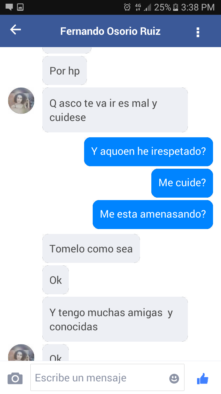 Hola buenos días Khayla, acabo de leer lo que escribes y sí, tengo mis pruebas, porque en su momento yo era muy sano e inocente en este ambito y en su momento sentí temor de que me fueras a voletear te screenshots de las conversaciones donde me insultas, me amenasas de que me vas a voletear tanto con mujeres o otras trans, donde dices que cito textualmente " le voy a hacer una que ni se va a imaginar, cerdo hp" y así siguió con su mensajes. Ahora no estoy cerca a un computador y desde el celular no puedo subir varias imagenes (no se por qué) pero dame un tiempito y les compartiré mis pruebas a todos, ya que insistes.