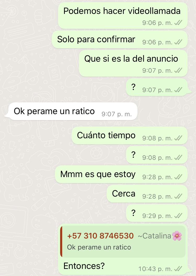 Buenas noches colegas, busque información en el foro con el número anterior y con el que se está anunciando esta niña en mileroticos pero no encontré nada, se me hace muy extraño por qué es una niña que se ve bien bonita; lo raro es que le escribí para solicitar verificación por videollamada y hasta el momento no me repsondio adjunto enlace y fotos.