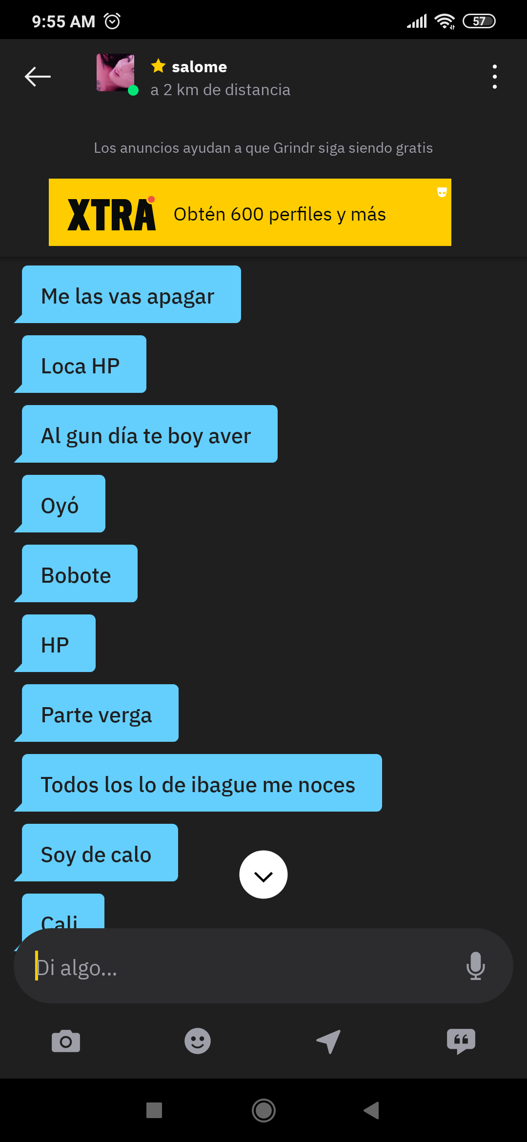 (01-01-2023, 03:02 PM)Denuncias escribió: Ojo contacte a está por grindr se hace llamar Salomé, al inicio dijo vamos a grabar w yo soy sería y yo más mk q dejé, bueno después todo lo normal cuando acabamos de paró en la puerta y cojio una lata de gas pimienta y me dijo me das 120 o te gaseo y te robo y ps pailas ya habíamos acordado 50 bueno yo escondí rápido porque iba con más primer error siempre llevar lo justo y si también cojio una navaja para amenazar la ubicación es detrás del coliseo de las ferias mucho cuidado y ps ella pensó q ganaba pero ps toco romperle un vidrio para que afine.